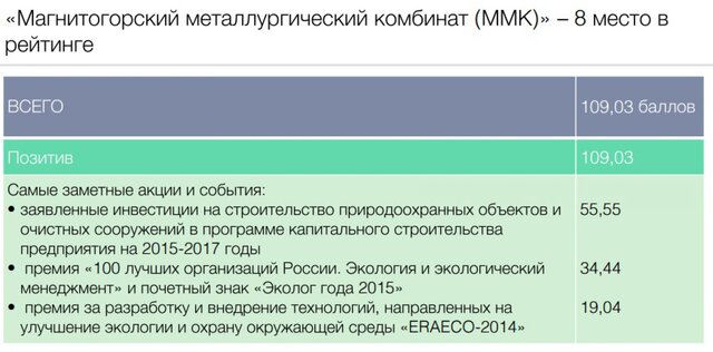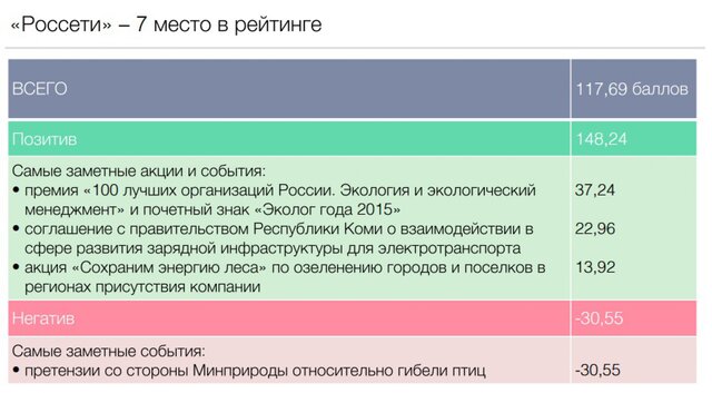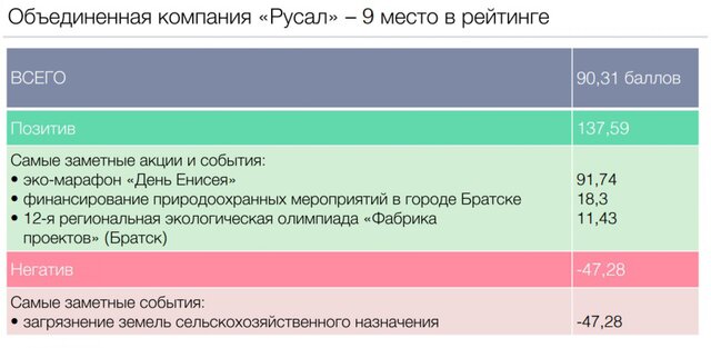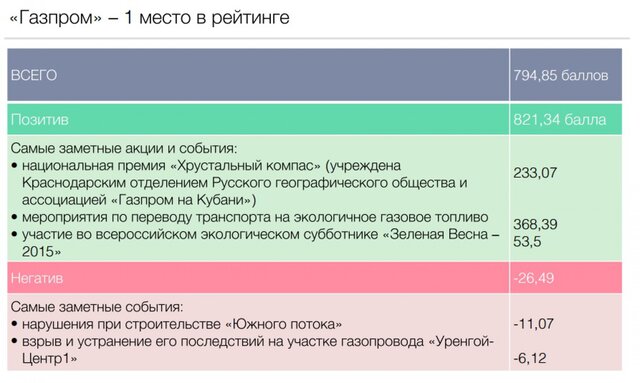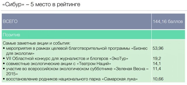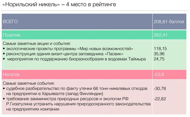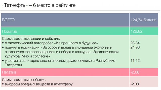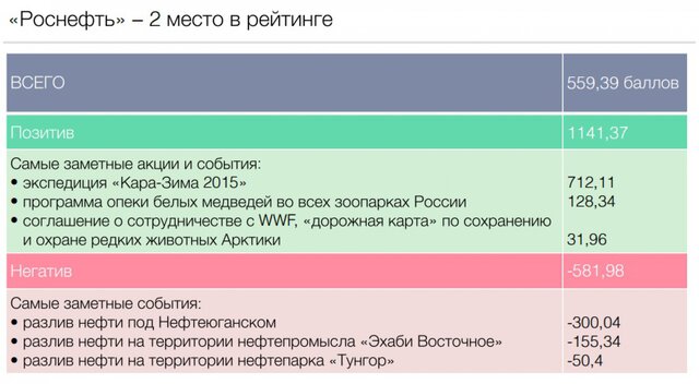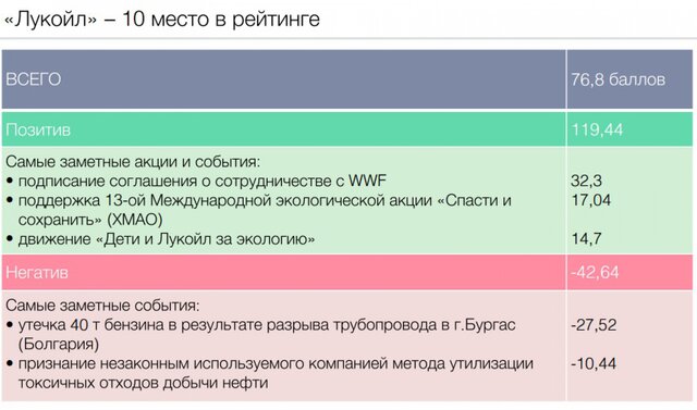 В рейтинге были учтены как позитивные, так и негативные события, в том аварии, повлекшие за собой ущерб для окружающей среды, штрафы за нарушение экологических норм и т.д.