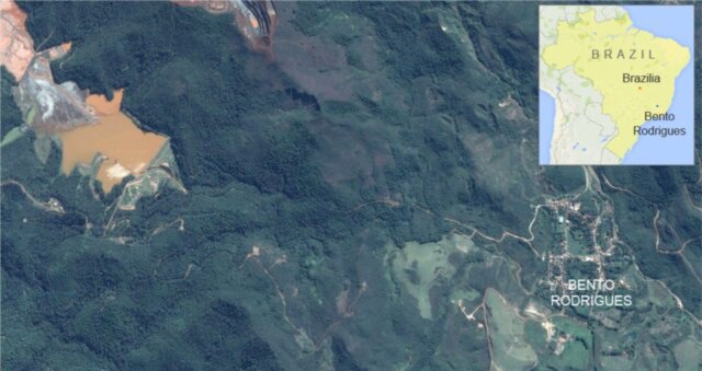 Из-за прорыва двух дамб, Сандарем (Santar∎m) и Фундао (Fund∎o), на водохранилище возле железорудного комплекса Германо в штате Минас-Жерайс вода с токсичными отходами обогатительного производства затопила близлежащий поселок Бенто Родригеш. Согласно поступающим сообщениям, погибли по меньшей мере 17 человек, еще 45 числятся пропавшими без вести.