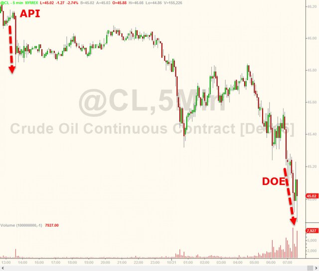 Стоит ли говорить, что данные оказались намного выше прогнозов, а цена не нефть отреагировала падение. Котировки смеси WTI рухнули в районе $45 за баррель.