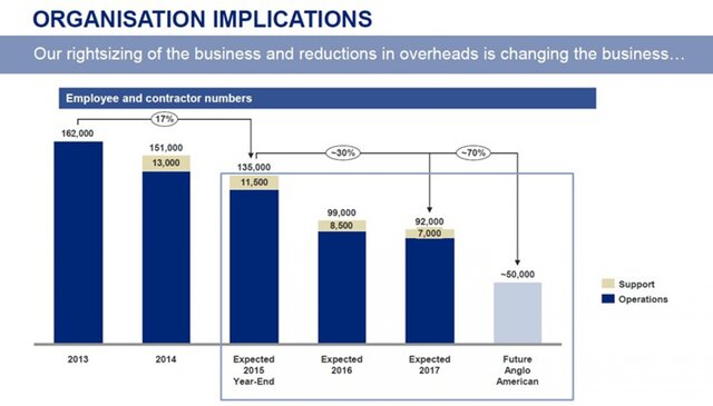 В руководстве Anglo American планируют сокращение операционных издержек на $3,7 млрд до 2017 г. Объем капитальных вложений в 2015–2017 гг. планируется снизить на $2,9 млрд. Компания также подтвердила намерение продать свои проекты по добыче фосфатов и ниобия.