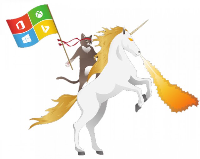 Среди официальных обоев можно найти и мемы - например, кот-ниндзя, держащий в руках флаг Windows и оседлавший единорога или тираннозавра