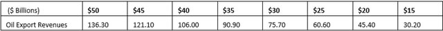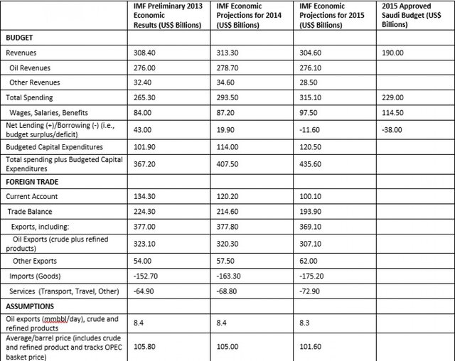 Следующая таблица позволяет оценить влияние падения цен на нефть на бюджет Саудовской Аравии.