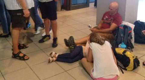 На онлайн-табло аэропорта ее тоже нет. Пока что люди находятся в зоне duty-free. Места там довольно мало, кондиционеров нет (на Родосе сейчас плюс 26 градусов), воду и сэндвич туристам предоставили лишь спустя несколько часов ожидания: