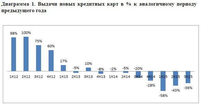 Темпы выдач новых кредитных карт в РФ в июле-сентябре 2015 г. сокращаются восьмой квартал подряд, подсчитали в Национальном бюро кредитных историй (НБКИ) по информации 3,5 тыс. кредиторов на 1 октября 2015 г.