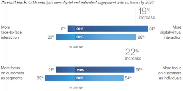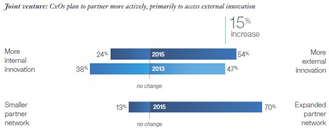 Всего за два года процент топ-менеджеров, которые не исключают возможности конкуренции с компаниями из других отраслей, вырос более чем на четверть, увеличившись с 43% в 2013 г. до 54% в 2015 г.