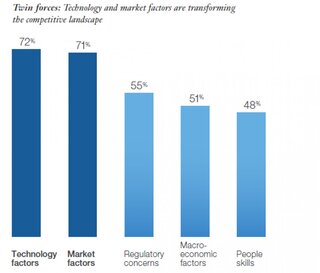 Топ-менеджеры ставят технологии на верхнюю строчку рейтинга внешних факторов, которые оказывают наибольшее влияние на их предприятия согласно последним трем исследованиям IBV для руководителей высшего звена.Сегодня впервые все участники опроса, независимо от их роли, рассматривают технологии как наиболее значимый внешний фактор, воздействующий на их компанию.