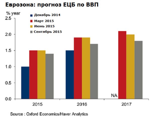 По оценкам ЕЦБ, экономический рост в этом году составит 1,4%, а в следующем – 1,7%. Это довольно слабый результат.