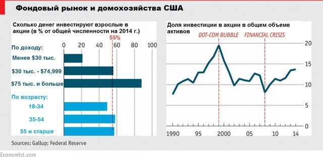 Акции, как правило, держат те, кто много зарабатывает (свыше $75 тыс. в год) и кто, вероятнее всего, не будет сокращать расходы при уменьшении своего богатства. Кроме того, мелкие инвесторы не склонны финансировать инвестиции с помощью кредитов.