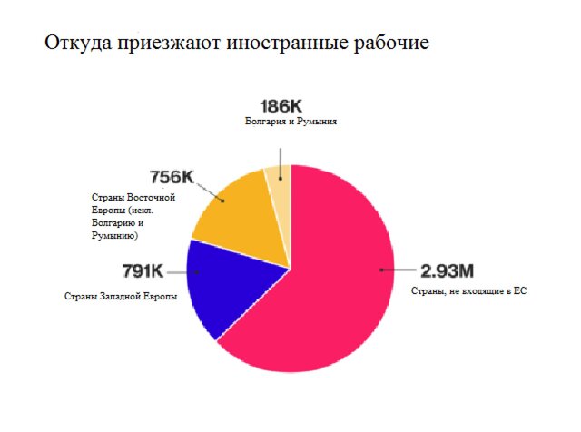 Для сравнения: 61% приезжают из 15 стран – первых членов ЕС и 67% приезжают из 8 стран восточной Европы, которые вошли в состав ЕС в 2004 году.