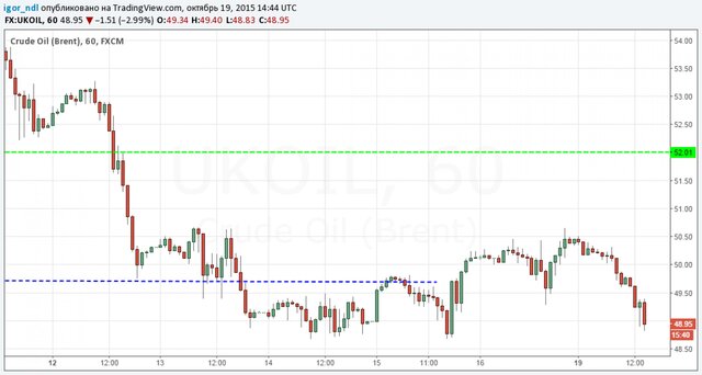 Как итог, по состоянию на 17:45 по московскому времени нефть марки Brent теряет уже 3%, котировки опустились уже ниже $49. График выглядит удручающе и буквально преисполнен безнадежностью.