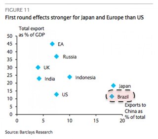 Бразилия страдает от всего: падения цен на сырье, девальвации валюты на фоне укрепления доллара, снижения спроса из Китая и девальвации юаня, причем от последнего даже в большей степени.