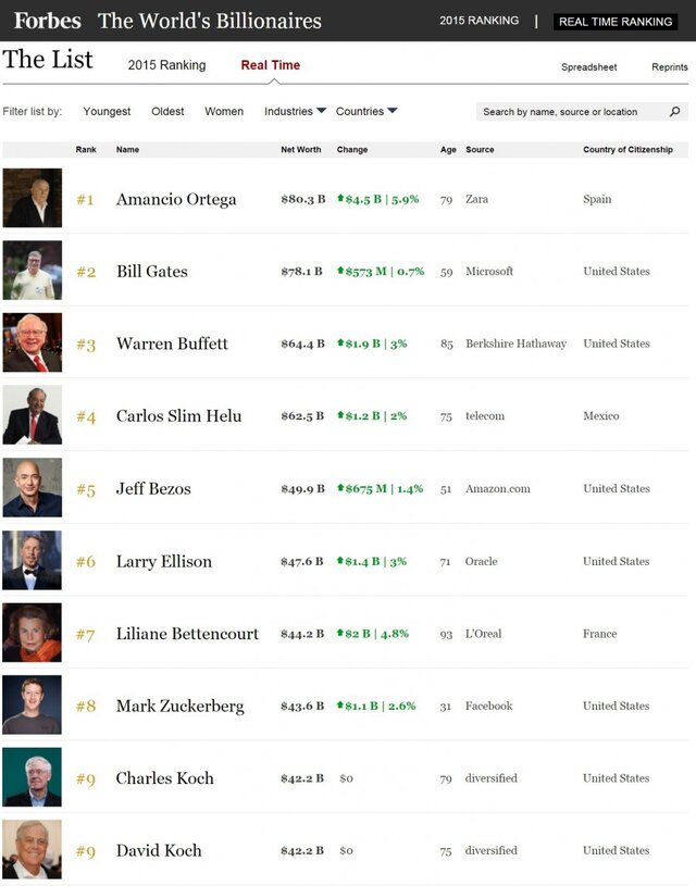 Однако, Гейтс вскоре вновь вернул себе пальму первенства после очередного обновления списка с учетом изменения котировок акций, в различных компаниях принадлежащих миллиардерам.