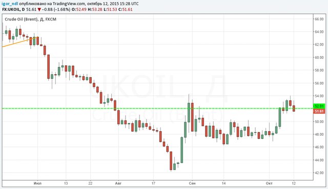 Как мы видим, не помогают даже заявления ОПЕК о том, что рынок начинает стабилизироваться. Сейчас куда важнее выглядят чисто рыночные факторы. Так, например, на прошлой неделе фьючерсы на смесь Brent так и не смогли преодолеть максимум конца августа на отметке $54, после чего логично последовал откат. Понятно, что в выходной день этот уровень штурмовать никто не станет, так как без объемов важные отметки никогда не проходятся.