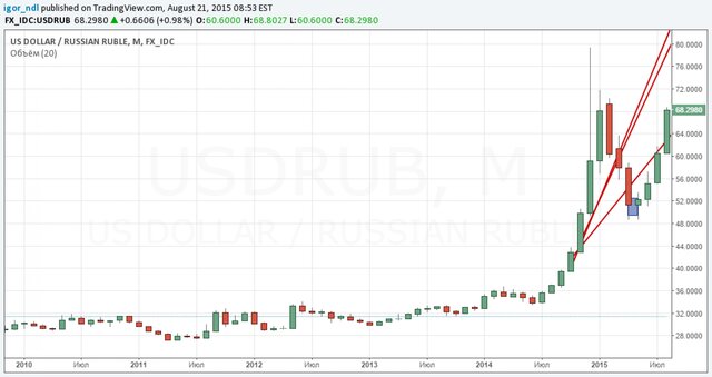 Кстати, еще один любопытный момент. В 2008 г. рубль ослаб намного меньше. Тогда доллар вырос с 23 руб. до 36 руб. , а сейчас с 33 до 36 руб.