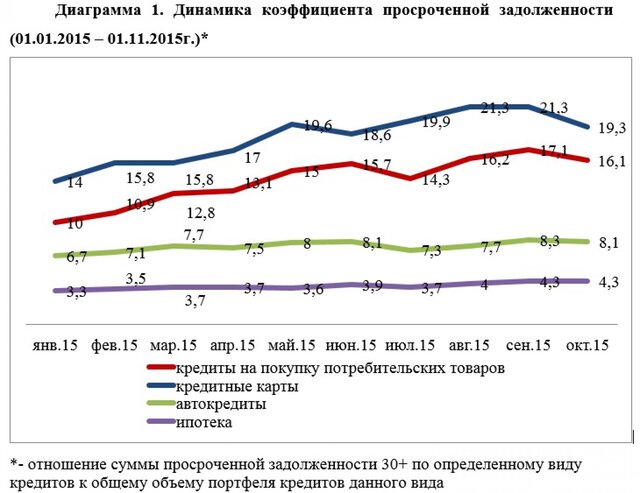 Пик просроченной задолженности по розничным кредитам пришелся на август-сентябрь 2015 г.