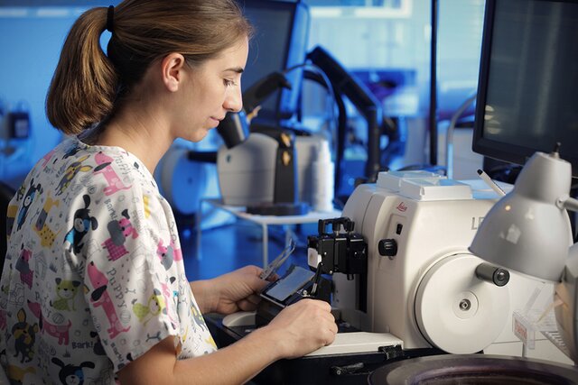 Чем они занимаются: готовят гистопрепараты из среза тканей для микроскопического исследования и диагноза патологоанатома.