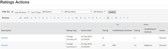 В пресс-релизе компании отмечается, что снижение рейтинговой оценки произошло из-за решение властей Украины о начале реструктуризации части госдолга страны. В результате этих действий инвесторы смогут получить меньше средств, чем они ожидали в соответствии с первоначальными условиями.∎