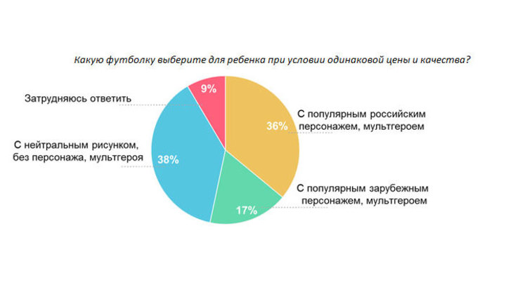 Важным трендом последнего времени стало широкое распространение детских товаров по анимационным лицензиям. 85 процентов родителей покупают своим детям одежду и игрушки с персонажами из популярных мультфильмов, а среди родителей детей в возрасте от 4 до 6 лет этот показатель составляет 94 процента.