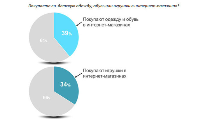 Традиционные каналы продаж детской одежды и игрушек сохраняют лидерство, однако интернет-магазины уже занимают существенную долю (регулярно покупают в них более трети опрошенных, а около 20 процентов отмечают в качестве основного места покупки), причем по признанию опрошенных средний чек в интернете зачастую выше, чем в обычном магазине.