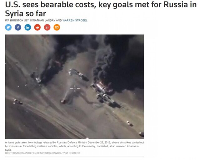 Подобные заявления попали в СМИ впервые с момента начала кампании ВКС России в Сирии. До сих пор президент США Барак Обама и его советники (в частности, Сьюзан Райс) неоднократно заявляли о том, что президент РФ Владимир Путин якобы "ведет непродуманную кампанию в поддержку президента Сирии Башара Асада, которая слишком дорого стоит и будет обречена на провал".