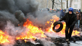 Весь день прессе приходится работать в украинской столице при особых мерах безопасности: в бронежилетах, зачастую с большой хорошо читаемой отовсюду надписью "TV" или "Press". В ход на улицах идет даже огнестрельное оружие. Так, известно, что погибшие сотрудники правоохранительных органов скончались от огнестрельных ранений: один в машине скорой помощи, второй – в больнице.