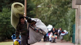 Понедельник, утро. Эври, пригород Парижа. Заспанные дети и взрослые с пожитками в руках стоят на улице. Девяносто человек, все они — цыгане, выходцы из Болгарии и Румынии. Полицейские, только что разогнавшие лагерь, говорят, что национальность здесь ни при чем, и действовали они строго в интересах самих цыган. Те, дескать, жили слишком близко к железной дороге, а это опасно.