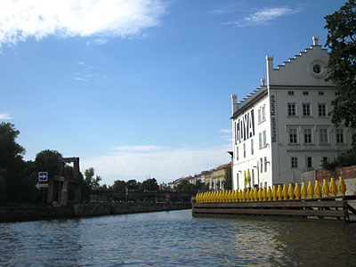 Напротив – еще одно творение авангардистов: практически из воды торчит огромный стул. Выглядит хоть и неожиданно, но органично, правда, что хотел сказать автор – не совсем понятно. Зато ясно, что композицию во дворике Музея современного искусства соорудили явно какие-то пацифисты – это 4 огромных черных пистолета, подвешенных в воздухе и направленных друг на друга.