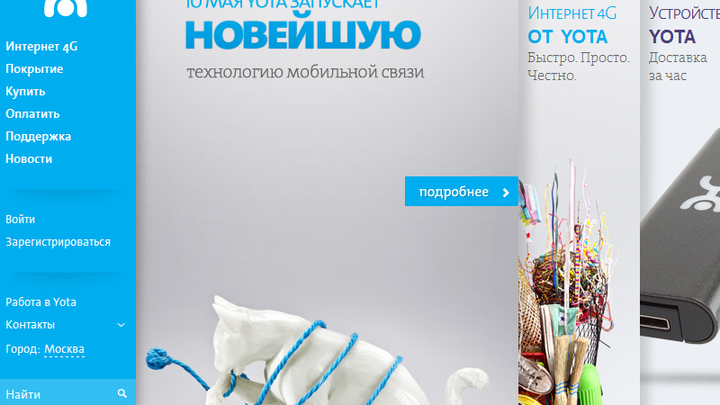 Напомним, работающий под брендом Yota оператор мобильной связи "Скартел" объявил в конце февраля, что вскоре начнет предоставлять услуги в сети стандарта LTE в Москве. Переход с технологии WiMAX на LTE должен был произойти в ночь с 14 на 15 апреля этого года и занять около трех часов.