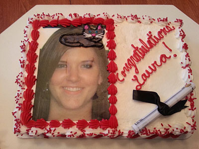 Выпускница одного из колледжей в штате Индиана получила на праздник весьма странный подарок. Мать хотела порадовать 22-летнюю Лауру Гамбрель тематическим тортом, однако кондитеры слегка подпортили ее планы, пишет The Metro.