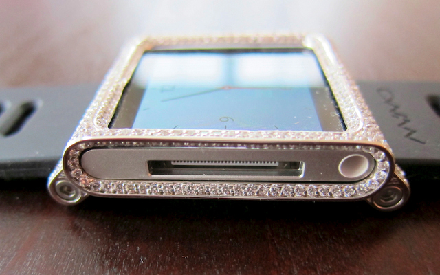 Онлайн-магазин ювелирных украшений ZShock выставил на продажу необычный чехол для медиаплеера Apple iPod nano, выполненный в виде наручных часов и вручную инкрустированный бриллиантами. Стоимость Lunatik - "элитного" чехла для iPod из белого золота - составляет 18 тысяч долларов. Для создание одного экземпляра "часов из iPod" ZShock требуется около трех-четырех недель.