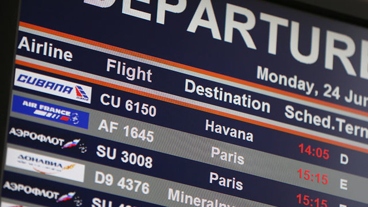 В аэропорту Шереметьево уже должна была закончиться посадка на рейс в Гавану, вылет которого по расписанию в 14:05 по московскому времени. Ожидается, что на борту может находиться бывший сотрудник ЦРУ Эдвард Сноуден, за которым охотятся власти США.