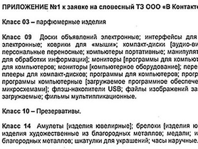 В списке есть вполне ожидаемые для соцсети услуги: лицензирование программного обеспечения, предоставление доступа на форумы в интернете, инвестирование. Но есть и весьма необычные товары, которые получат товарный знак vk.com. В частности, это презервативы, парфюмерия и кондитерские изделия.