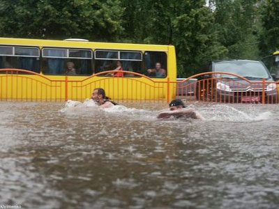 А вот в украинском Луцке потоп стал поводом устроить заплыв по улицам города в попытке догнать и перегнать автобус, сообщает Youreporter.