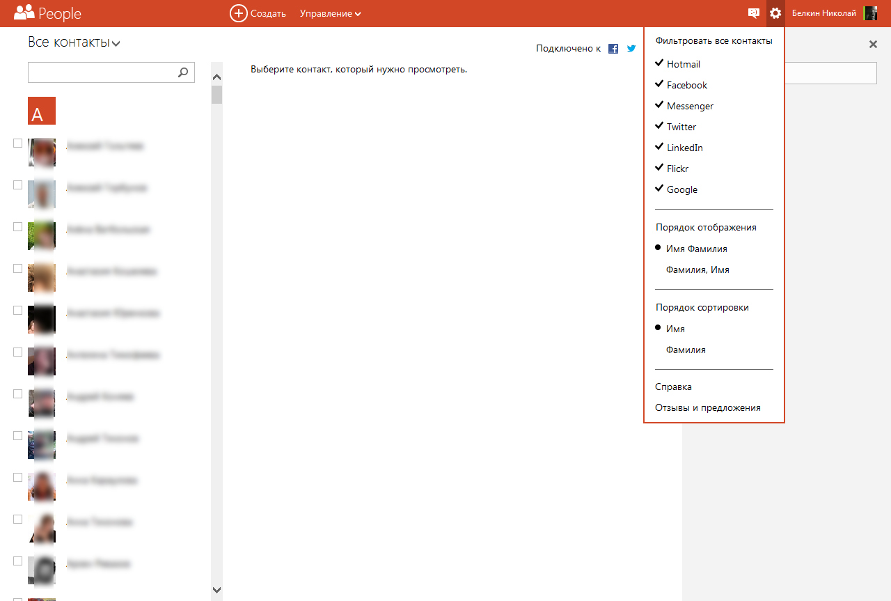 Аналогичные возможности были, разумеется, и в Hotmail, но теперь в них проще разобраться. Появилось и новое — чат с друзьями из Facebook, а также интеграция Skype (пока она не реализована). То есть голосовые и видеозвонки в популярном сервисе IP-телефонии можно будет инициировать прямо с сайта Outlook.com. Помимо Facebook можно связать почту с учетыми записями Twitter, LinkedIn и Gmail и загрузить из них контакты, а также доступные сведения о них (в частности, фотографии профиля). Причем, например, с контактами Google синхронизация будет происходить в реальном времени. Нажав на стрелку рядом с логотипом Outlook можно перейти на SkyDrive, в Календарь (они пока выглядять по-старому, но наверняка перейдут на новый Metro-интерфейс к осени) а также в приложение People. В нем собраны все контакты из подключенных сервисов, можно даже писать оттуда на стенах "друзей" в Facebook.