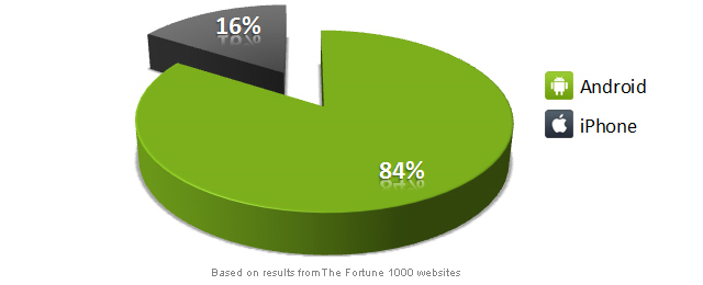 Согласно этой диаграмме, Android загружал сайты компаний из списка The Fortune 1000 на 84% быстрее, чем iPhone: