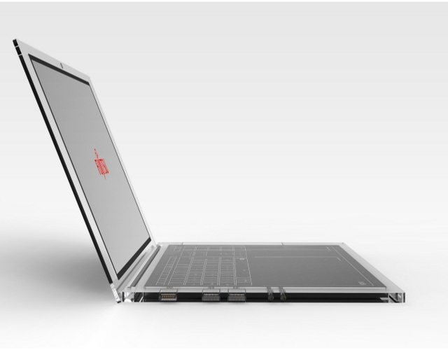 Несмотря на то что в ноутбук встроен аккумулятор, устройство полностью лишено проводов - зарядить его от электричества не получится, а в темное время суток аппарат откажется работать, пишет TechCrunch. Гаджет изготовлен из прозрачного поликарбоната, весит он около двух килограммов.