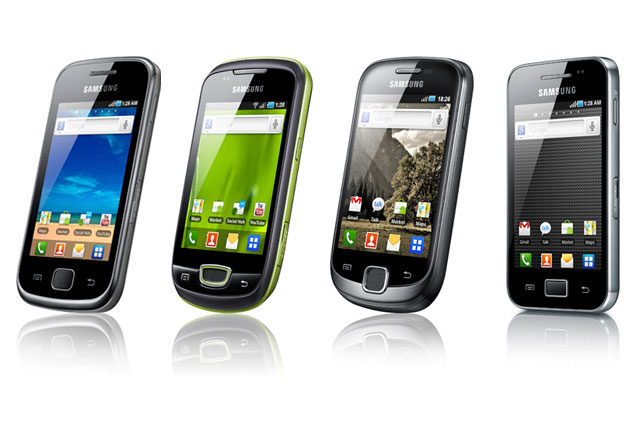 Линейка Android-смартфонов Galaxy (слева направо): Gio, mini, Fit, Ace: