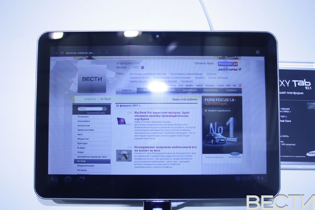 Еще одной изюминкой "мобильного" павильона стал Galaxy Tab 10.1 на платформе Android 3.0 (Honeycomb) - операционной системе, созданной специально для планшетных компьютеров. Аппарат работает на двухъядерном гигагерцевом процессоре ARM Cortex Tegra 2 и имеет 8 Гб оперативной памяти.