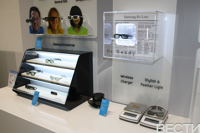 Новая линейка 3D-очков и беспроводное зарядное устройство (по форме напоминает черный цилиндр):