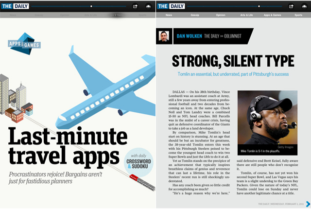 На презентации "iPad-эксклюзива" в Нью-Йорке Мердок заявил, что содержание газеты The Daily, доступное в любое время и в любом месте, было разработано с учетом особых интересов нового поколения потребителей. В частности, за новостной секцией следует специальный раздел, посвященный сплетням о знаменитостях.