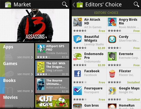 Приложение Android Market, с помощью которого пользователи смартфонов и планшетников на платформе от Google устанавливают на свои устройства новые программы, получило серьезное обновление. Была усовершенствована структура "рынка", его внешний вид, а также добавлены новые типы "продуктов".