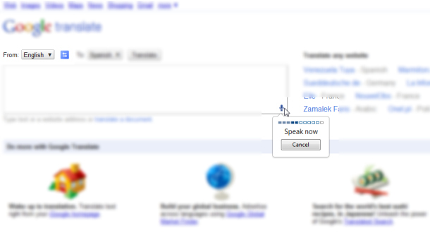 Она уже сейчас позволяет делать переводы "на лету" в сервисе Google Translate - для этого следует кликнуть по значку с микрофоном в нижнем правом углу текстового поля и произнести вслух предложение для перевода. На данный момент голосовая функция поддерживает только английский язык.