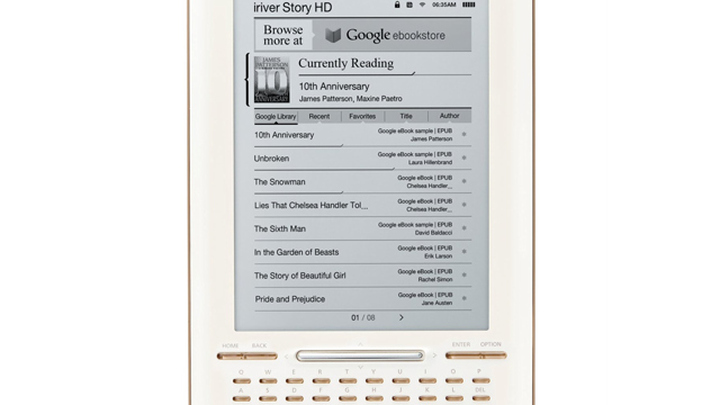 Новый аппарат называется iriver Story HD и внешне похож на Amazon Kindle первого поколения. Ранее покупать книги в собственном магазине Google можно было через браузер на компьютере, смартфоне или планшетнике, и потом закачивать на любую "читалку", однако устройств со встроенной поддержкой такой функции не было.