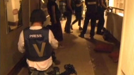 А возможно и под "Риксосом". Так думают и западные журналисты, которых в течение двух дней держали в заложниках в этом отеле. Утром обстановка в гостинице резко ухудшилась, выстрелы были слышны не только на улице, но и в фойе. Однако несколько часов назад верные Каддафи бойцы покинули "Риксос". С какой целью они это сделали, непонятно. Журналисты постарались уехать из гостиницы как можно быстрее.