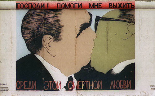Со стороны Западного Берлина на стене рисовали и до объединения Германии. С Востока же она была окрашена белой и серой краской, специальный сетчатый забор был установлен, чтобы не дать горожанам подойти вплотную.