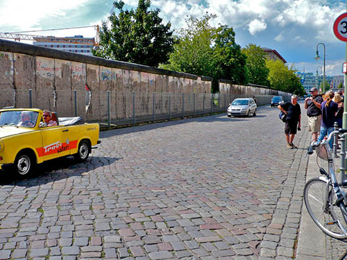 Сейчас стена, точнее, небольшие ее участки, сохраненные "в назидание потомкам", - не только напоминание о мрачных страницах истории, но и одна из главных туристических достопримечательностей Берлина. Вдоль барьера можно прокатиться на переделанном в кабриолет шедевре восточногерманского автопрома - малолитражке "Трабант".