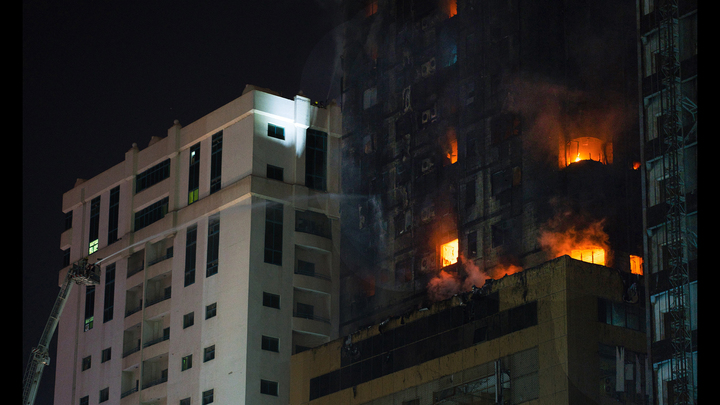 Пожарным удалось остановить распространение огня в 49-этажном жилом здании в городе Шарджа на северо-западе ОАЭ.