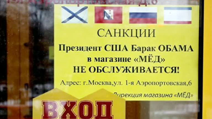 Неофициальные народные санкции рядовых россиян расширяются с каждой минутой. Обаме и конгрессменам запрещено посещать магазин "Мед", гладить собаку, ходить в бары, пользоваться пуфиками и обращаться за путевкой в санаторий и обслуживаться в пенсионном фонде Махачкалы.
