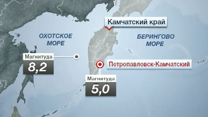 Землетрясение магнитудой 6,9 произошло в 17:44 по местному времени (9:44 по Москве) в Охотском море у западного побережья Камчатки в 560 километрах от Петропавловска-Камчатского, отметили в региональном управлении МЧС. В Петропавловске-Камчатском магнитуда колебаний земной коры составила 5.