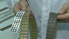 "Гибридные чип-модули для универсальной электронной карты могут быть и контактные, и бесконтактные. Для паспортно-визовых документов — это чисто бесконтактная конструкция, которая работает с антенной. Вместе они могут быть использованы около валидатора или другого устройства, для которого они предназначены, чтобы записывать и считывать информацию", — объясняет Александр Егорчиков, заместитель начальника цеха по технологиям.